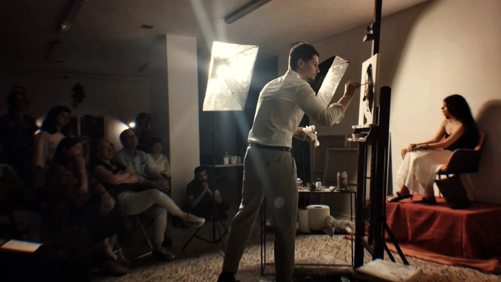 Las clases de retrato están enfocadas a trabajar del natural, se realizarán ejercicios de 16 horas mensuales (4h semanales) con el modelo para lograr los resultados esperados. También habrá demostraciones en vivo de Santiago Pina para aprender sus procesos y técnicas.